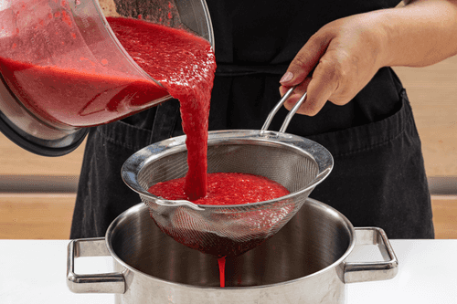 Пропустить получившуюся ягодную массу через сито, чтобы избавится от косточек.