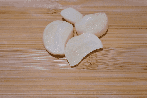 Чеснок очистить и разрезать, если зубчики большого размера.