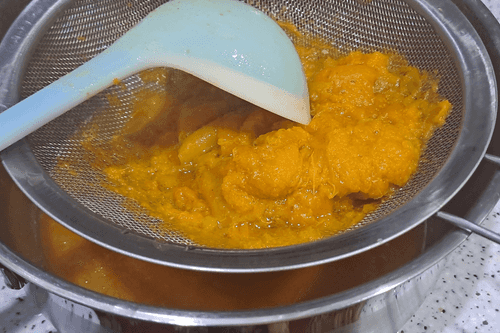 Готовые абрикосы половником протереть через дуршлаг.