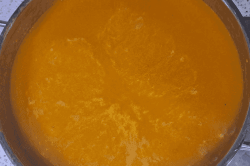 Перетертое пюре поставить на огонь, довести до кипения и кипятить примерно 10 минут, периодически помешивая.
