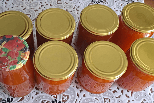 Банки объемом 0,5 литра (примерно 7 штук) хорошо вымыть и простерилизовать удобным способом.