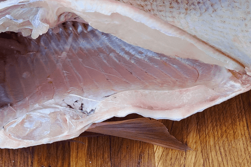 Удалить у рыбы голову и плавники.