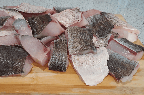Нарезать рыбу на куски средних или малых размеров.