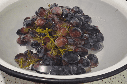 Виноград хорошо вымыть под проточной водой.