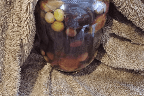 Укутать банку с компотом пледом или полотенцем.