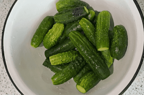 Огурцы хорошо вымыть и обрезать края.