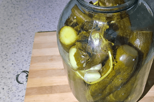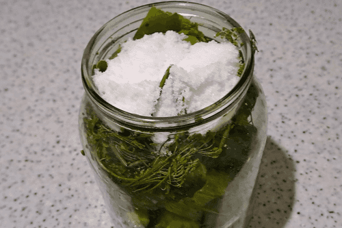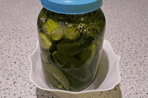 Закрыть банку плотной, чистой, капроновой крышкой. Перевернуть несколько раз или покатать на столе, чтобы соль хорошо растворилась. Оставить в теплом месте (но не на солнце, иначе огурцы могут побелеть) на 2–3 дня.