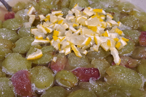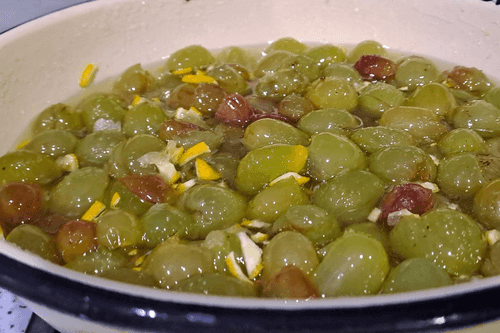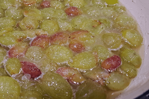 Виноград в миске хорошо перемешать и поставить на огонь.