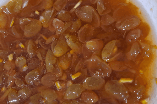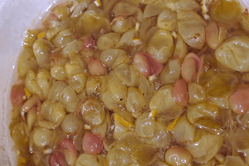Отделить ягоды винограда от веточек. Удалить из винограда косточки.