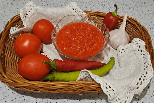 Аджика без варки с чесноком и хреном – это настоящая огненная приправа, корни которой уходят в грузинскую кухню. Она воплощает дух Кавказа, объединяя резкость чеснока, жгучесть перца и пикантность хрена. В отличие от классической аджики, этот вариант не требует термической обработки, сохраняя свежесть и насыщенность вкуса каждого ингредиента. Помидоры придают легкую сладость, а уксус добавляет необходимую кислотность, обеспечивая длительное хранение. Эта аджика идеально дополняет мясные блюда, запеченные овощи и даже простую ржаную лепешку, превращая их в гастрономическое удовольствие. Острый, насыщенный вкус не только согревает, но и пробуждает аппетит, делая ее незаменимой на любом столе.