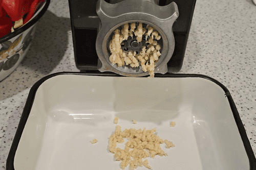 Острый перец очистить от семян и плодоножки, вымыть под проточной водой. Разрезать, чтобы пропустить через мясорубку.