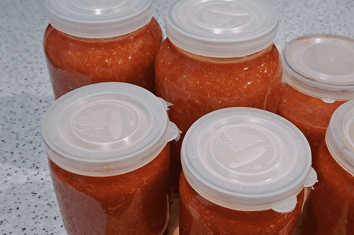 Выложить сырую аджику в чистые сухие банки, накрыть плотными капроновыми крышками. Хранить в холодильнике.