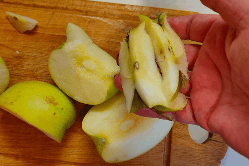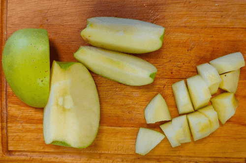 Далее каждую часть разрезать пополам и нарезать поперек на кусочки.