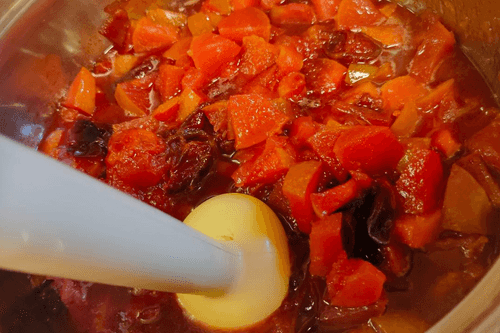 Закипятить в третий раз, помня про минимальный огонь, и пробить всю массу блендером.