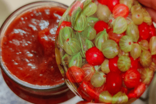 Довести до однородного состояния и дать 5 минут покипеть. Осторожно, джем будет булькать, и его надо накрыть крышкой. Огонь также должен быть минимальным, чтобы не пригорело.