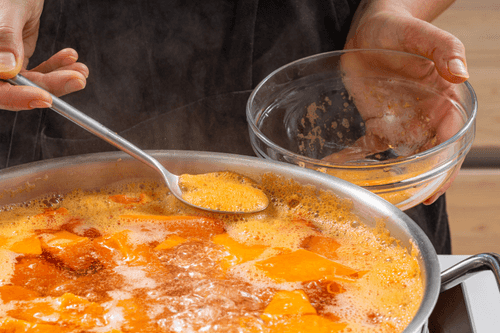 Отварить тыкву до готовности, время от времени снимая пену.