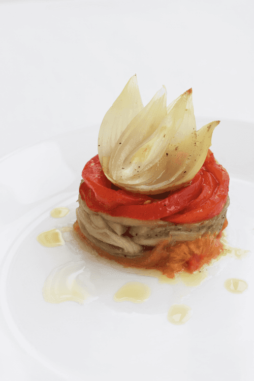 Эскаливада — традиционное блюдо испанской кухни, особенно популярное в Каталонии. Это простая, но восхитительная закуска из запечённых овощей, пропитанных ароматным оливковым маслом и специями. Ее происхождение связано с сельскими регионами Испании, где свежие сезонные продукты запекали на открытом огне. Вкус эскаливады — насыщенный и глубоко овощной, с нежной сладостью запечённого перца, мягкостью баклажана и лёгкой пряностью чеснока. Остывшие овощи очищаются от кожицы и сервируются слоями, создавая игру текстур. Часто дополняется оливками, анчоусами или свежим сыром, превращаясь в универсальное блюдо, которое можно подать как самостоятельную закуску, гарнир или основу для тапас. Эскаливада идеально сочетается с хрустящим хлебом и бокалом хорошего испанского вина.