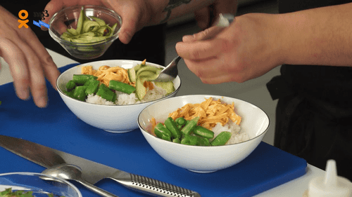 Это знаковое гавайское блюдо, где рисовая основа сочетает в себе разнообразные ингредиенты. В данном варианте вместо рыбы используют крабовые палочки, а также добавляют хрустящие битые огурцы. Рецепт был предложен бренд-шефом гастромаркета «Вокруг света» Алексеем Когаем в программе «Еда на ночь».