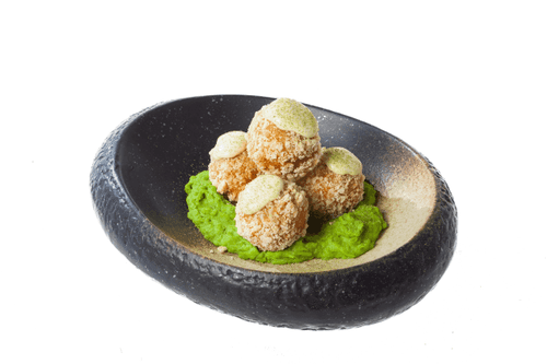 Аранчини с тремя сырами и зеленым горошком — изысканное итальянское блюдо, родившееся в солнечной Сицилии. Эти хрустящие рисовые шарики с нежной начинкой из моцареллы, горгонзолы и таледжо пленяют своим кремовым вкусом, дополненным ароматом шафрана и сливочностью маскарпоне. Панировка из хрустящих сухарей придает им аппетитную золотистую корочку, а пюре из зеленого горошка с нотками мяты подчеркивает свежесть и легкость блюда. Аранчини идеально подходят для уютных семейных ужинов или праздничных мероприятий, где они восхищают гостей своим гармоничным сочетанием текстур и вкусов. Подача с майонезом, infused с укропом, придает финальный акцент, превращая дегустацию в настоящее гастрономическое удовольствие.