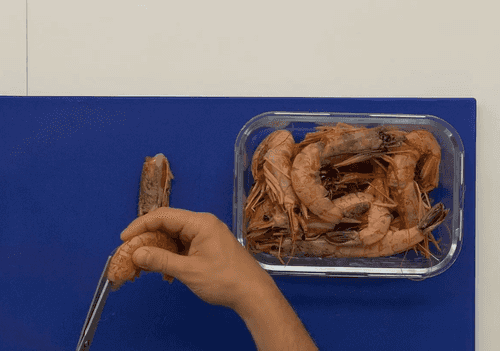У креветок удалить голову и пищевод.