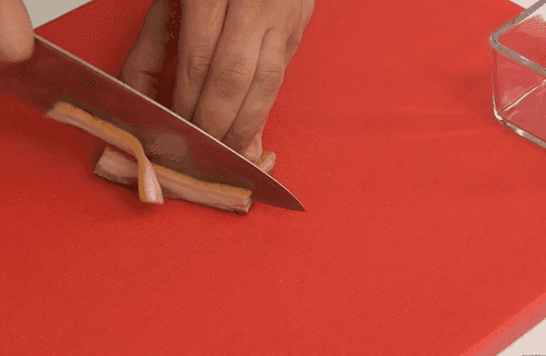 Нарезать бекон тонкой соломкой.