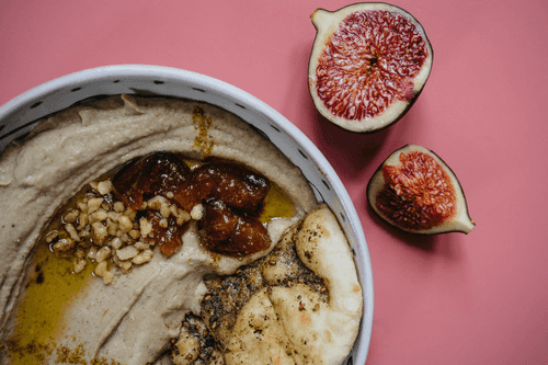 В московской хумусии «Абу Гош» готовят хумус с инжиром, который обладает необычным сочетанием сладкого, пряного и немного острого вкусов. Начните с того, что возьмите свежий инжир, очистите его от шкурки и нарежьте очень мелко. После этого добавьте инжир в хумус. Аналогично подготовьте имбирь, измельчив его, и также вмешайте в хумус. Эти два ингредиента подарят вашему блюду свежесть, соковитость и легкую сладость, которая не будет приторной. Хумус можно подавать как в горячем, так и в холодном виде.