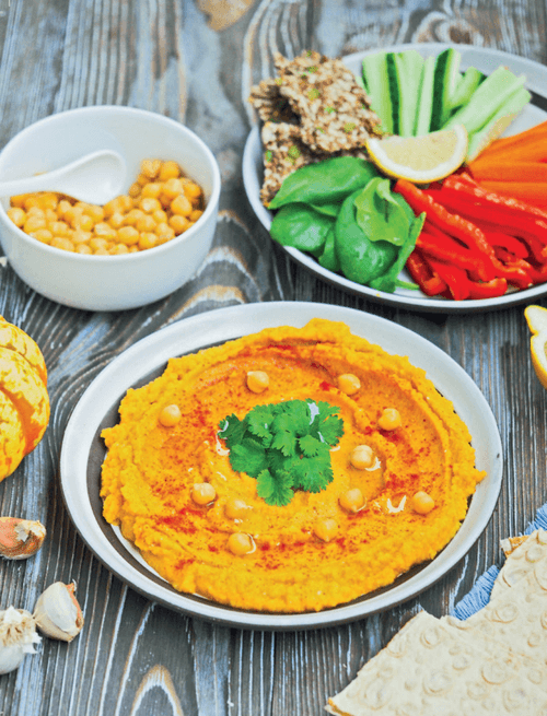 Легкий тыквенный хумус — это оригинальная интерпретация классического арабского блюда, привносящая в него нежную сладость запечённой тыквы. Хумус, известный с древних времён на Ближнем Востоке, традиционно готовится из нута с добавлением специй и оливкового масла. В этом варианте тыква придаёт ему бархатистую текстуру и тонкие осенние нотки, а чеснок и розмарин наполняют его ароматом свежести. Такой хумус идеально сочетается с хрустящими лепешками, свежими овощами или может стать пикантным дополнением к мясным блюдам. Он не только вкусен, но и богат белками, полезными жирами и клетчаткой, делая его питательным выбором для лёгкого перекуса или закуски к праздничному столу.