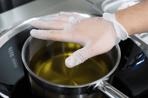 Разогреть масло до 190–210 градусов. Если дома нет термометра, нужно полагаться на ощущения: руке над маслом должно быть горячо, но не слишком, не так, чтобы хотелось немедленно ее убрать. Масло не должно кипеть — в слишком горячем масле перцы просто сгорят. Для проверки в масло можно капнуть кляр: если он в течение 2 минут станет золотистым, но не коричневым, можно кидать перцы.