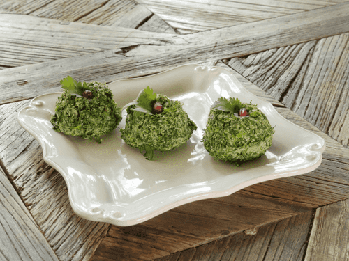 Получившуюся массу можно выложить на блюдо в виде шариков и украсить зёрнами граната.