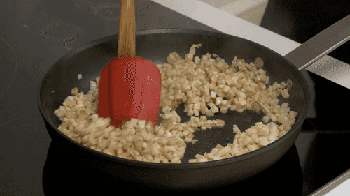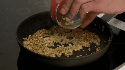 Добавить измельченный чеснок и жарить, помешивая, еще 30 секунд. Снять с огня.