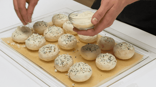 Посыпать грибы оставшимся сыром и отправить их в духовку, разогретую до 180 градусов, на 20 минут.