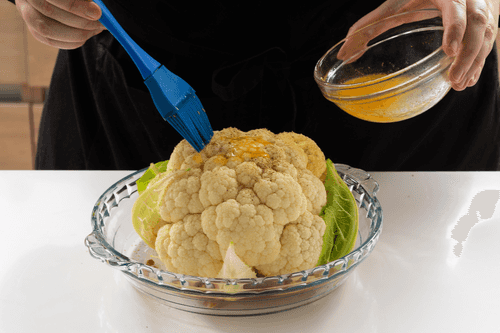 Подать капусту целиком и уже на столе разделать на сегменты. Полить получившимся соусом. Если все еще осталась жидкость, в которой капуста варилась, — ее можно заморозить, а затем добавлять в вареный рис или картофельное пюре.