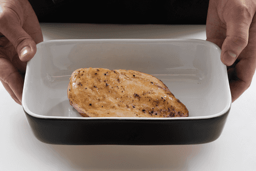 Переложить на противень и довести до готовности в духовке, разогретой до 180 градусов, в течение 8 минут.