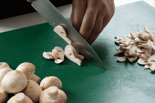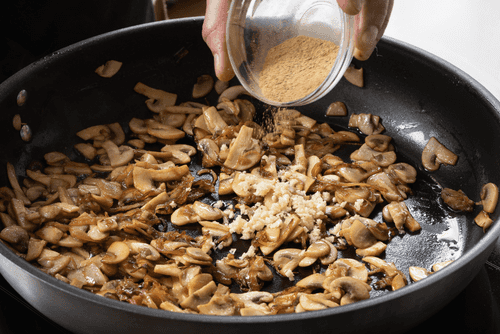 Добавить чеснок и измельченные белые грибы. Пожарить 30 секунд и снять с огня.