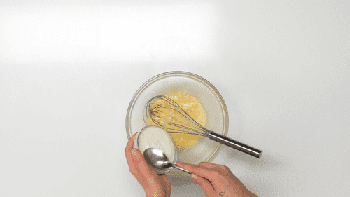 Добавить к яйцам 160 грамм сметаны и снова взбить вручную.