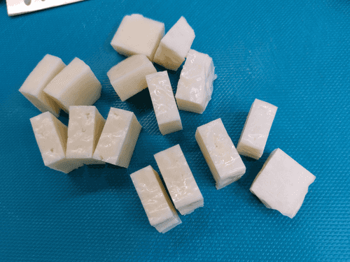 Сыр нарезать ломтиками шириной около 1 см.
