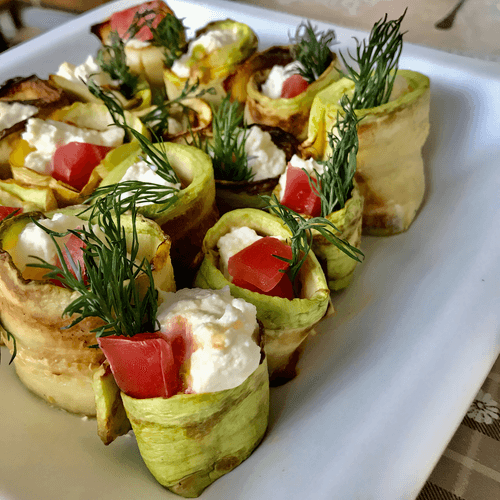 Рулетики из кабачков с помидорами