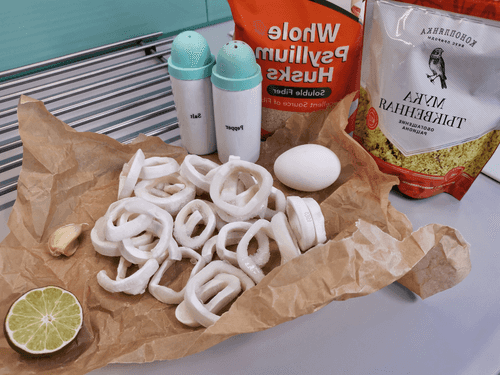 Кольца кальмара в нежном кляре — это изысканное блюдо, в котором сочетаются нежность морепродуктов и хрустящая текстура золотистой корочки. Исторически кальмары ценились в кухнях прибрежных регионов за их мягкий вкус и универсальность. В этом рецепте они приобретает особый шарм благодаря сочетанию лайма, чеснока и специй, создающих тонкую игру ароматов. Лайм придает свежую кислинку, а тыквенная мука и псиллиум обеспечивают воздушный, но плотный кляр. Обжаренные в кипящем масле, кольца кальмара становятся аппетитно румяными, а их аромат пробуждает желание насладиться морским деликатесом. Это блюдо идеально подойдет как закуска к праздничному столу, а также в качестве изысканного дополнения к легкому салату или пикантному соусу.