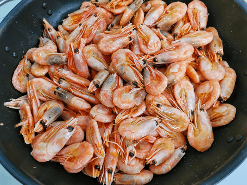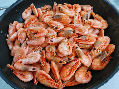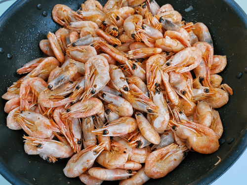 Выложить креветки в чесночно-имбирное масло и жарить на сильном огне.