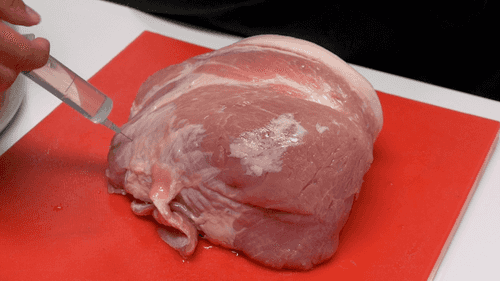 При помощи шприца ввести соленад в мясо, прокалывая его в разных местах и на разной глубине.