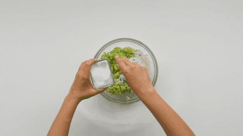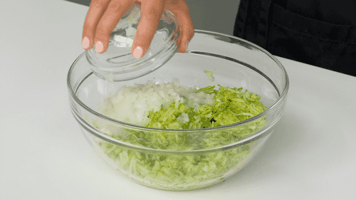 Посолить кабачки с луком и оставить их на 10 минут, чтобы выделился сок.
