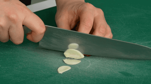 Зубчик чеснока нарезать тонкими ломтиками.