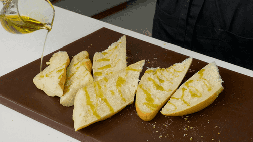 Сбрызнуть хлеб со стороны мякиша оливковым маслом и подсушить на сковороде.