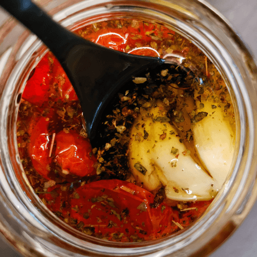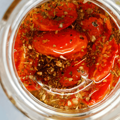 Вяленые в духовке помидоры черри с травами — это яркий представитель итальянской кухни, вобравший в себя её простоту и утонченность. Изначально вяленые томаты использовали как способ хранения урожая, но со временем они стали самостоятельным деликатесом. Томаты медленно запекаются при низкой температуре, что позволяет сохранить их естественную сладость и насыщенный вкус, а ароматные травы и специи придают им пряные средиземноморские нотки. Вяленые черри прекрасно дополняют пасту, салаты, антипасти, а также подаются на тостах с козьим сыром и базиликом. Пропитанные маслом и специями, они становятся еще более насыщенными, а пикантный чеснок и жгучий перец чили добавляют легкую остроту. Это блюдо — маленький гастрономический шедевр, воплощающий тепло и богатство итальянских традиций.