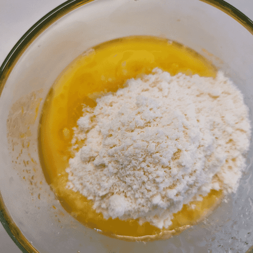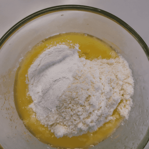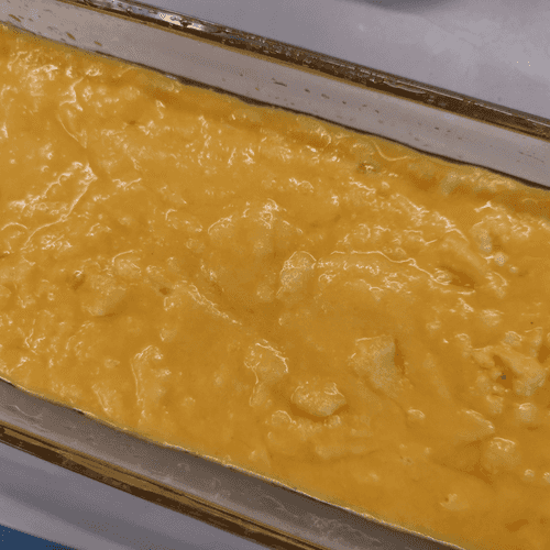 Добавить яйца, взбить массу до однородности и перелить в форму.