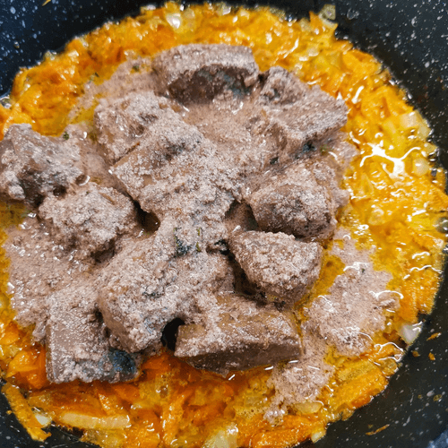 Через 3–5 минут постоянного помешивания добавить сливки и печень.