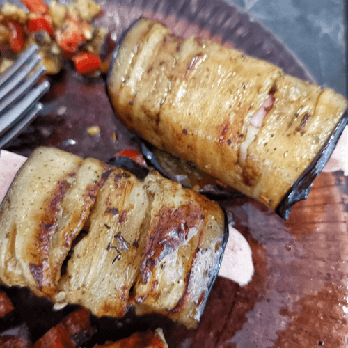 Рулетики из баклажана с сыром качотта – это элегантное сочетание нежной текстуры баклажанов, пикантного вкуса ветчины и мягкости итальянского сыра. Этот рецепт имеет корни в русской кухне, но вдохновлен средиземноморскими традициями, где овощи часто сочетают с ароматными сырами. Баклажаны, подрумяненные в сливочном масле с чесноком и пряными травами, приобретают насыщенный вкус и аппетитную текстуру. Ветчина добавляет солоноватую нотку, а растаявший качотта делает блюдо невероятно сочным. Эти рулетики идеально подходят как закуска или легкое блюдо, их можно подавать с зеленью и соусом на основе йогурта. Богатый вкус и простота приготовления делают этот рецепт отличным выбором для уютного семейного ужина или праздничного стола.