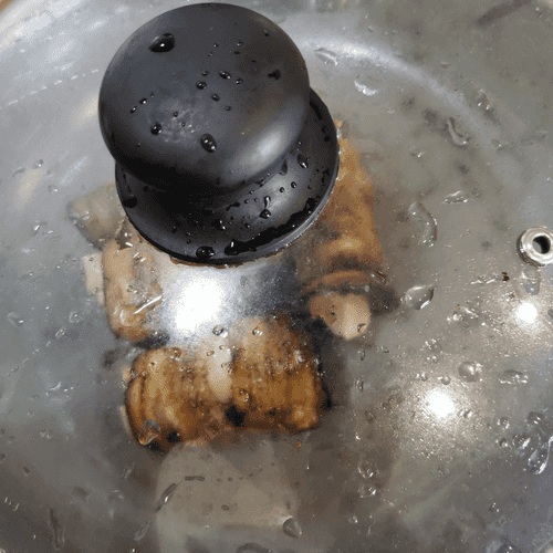 Выложить рулетики на сковороду, накрыть крышкой и обжаривать на медленном огне до тех пор, пока сыр не подплавится.