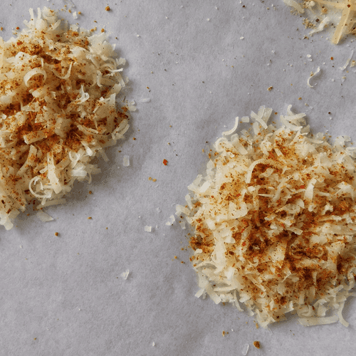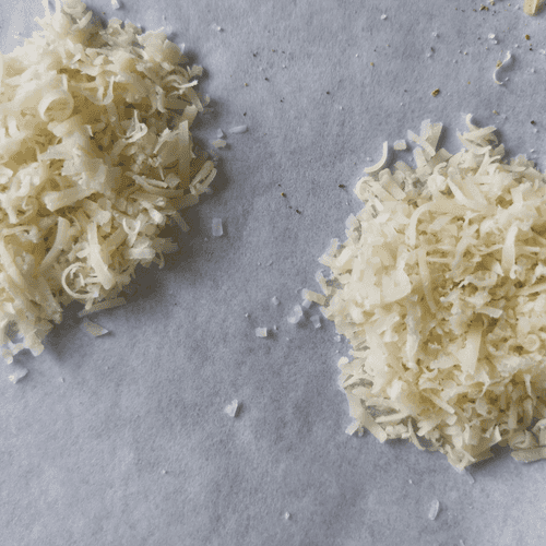 Сформировать кучки из тертого сыра диаметром около 5 см.