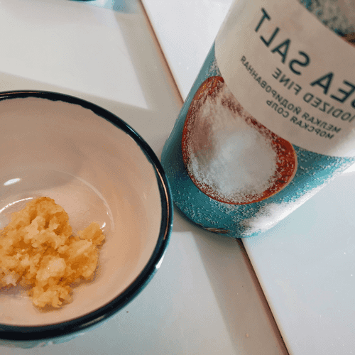 Натереть чеснок и посолить.